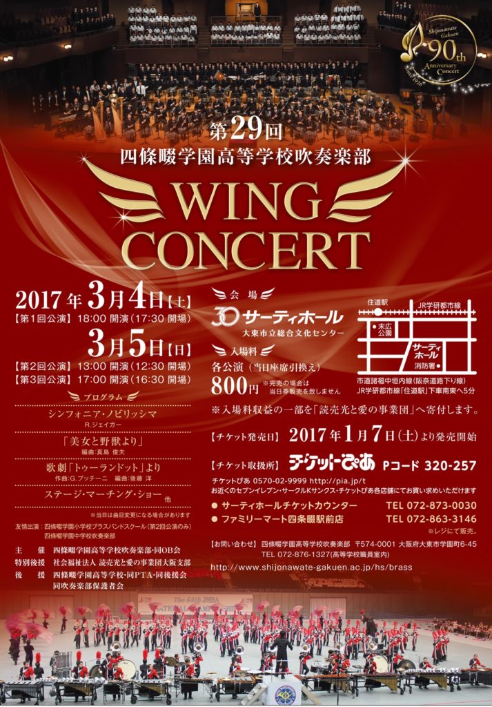 第29回 四条畷学園高等学校吹奏楽部 WING CONCERTのお知らせ