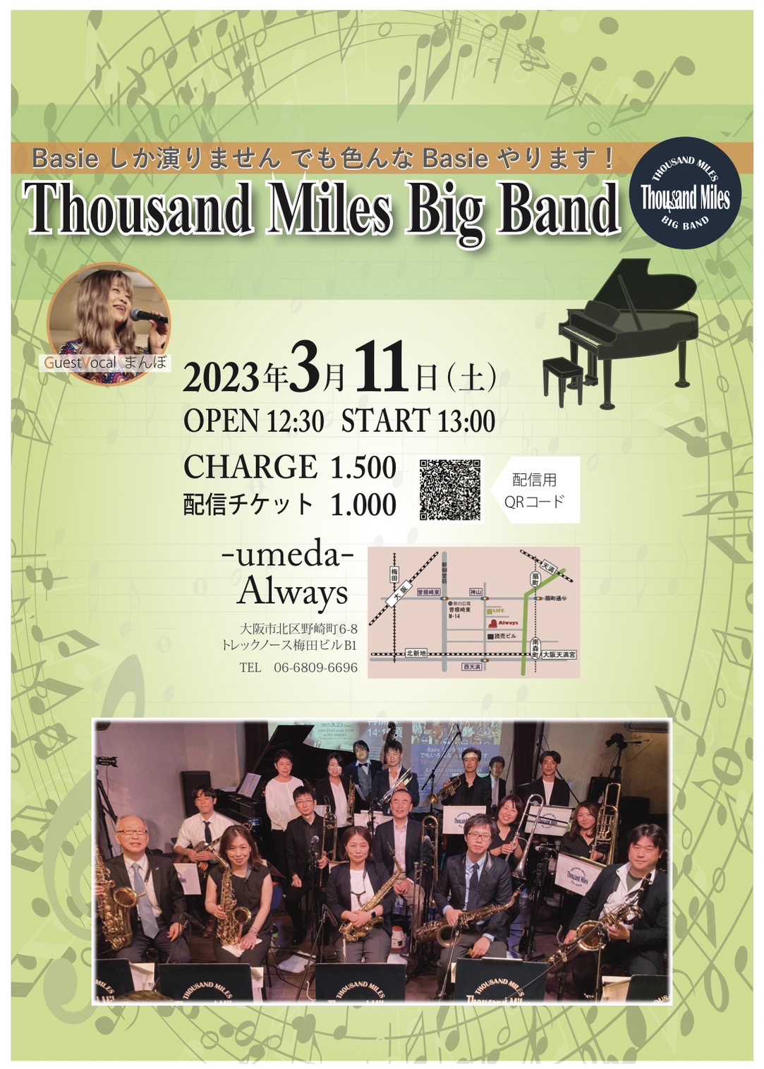 ♪Thousand Miles Big Band ♪ Liveのお知らせ 2023年2月25日イベント案内高橋 義明 ♪Thousand Miles Big Band ♪ Liveのお知らせ OB西澤淳司さん所属のバンドです。 3月11日(土) Open 12:30 Start 13:00 会場 梅田Always 今回は関西の大御所ドラマーとボーカルをお迎えしての開催です♫ ご声援の程、何卒、宜しくお願いします。宜しくお願いします。