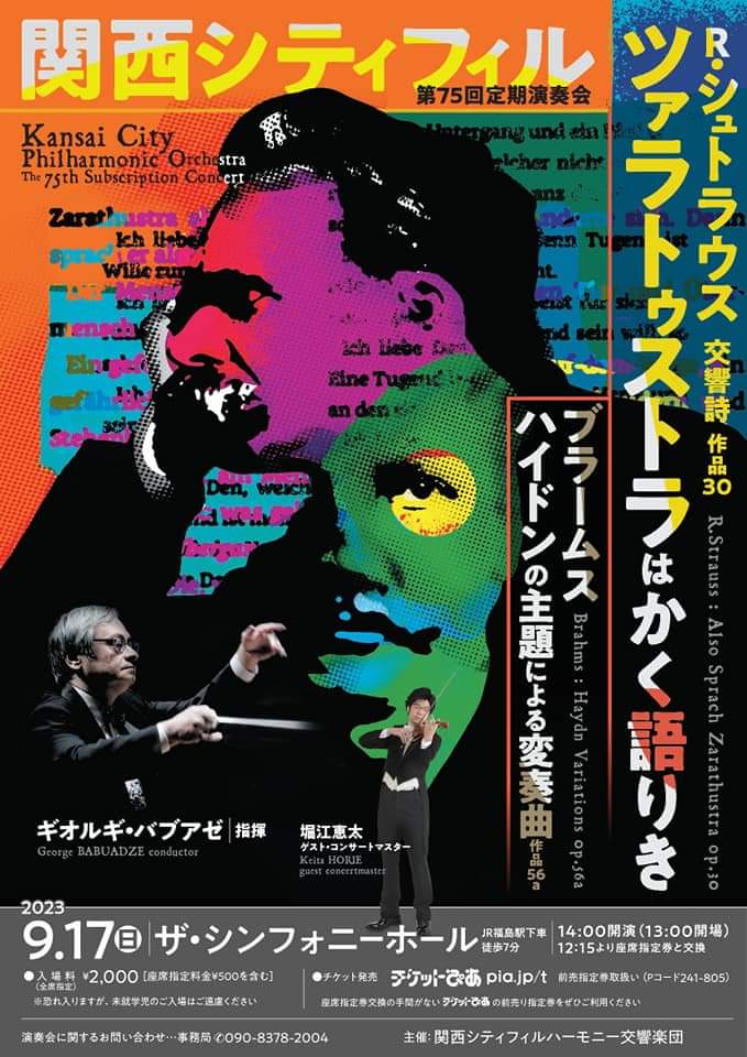 関西シティフィルハーモニー交響楽団 定期演奏会のお知らせ 2023年9月11日イベント案内芝野(後藤) 範子 日時:2023年9月17日(日) 14時開演(13時開場) 場所:ザ·シンフォニーホール 本校OG3名が出演します。 ご声援の程、よろしくお願いいたします。