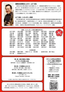 山下浩生先生還暦記念演奏会のお知らせ♪ 2023年9月11日OB連絡事項, お知らせ, その他コンサート, イベント案内, 連絡事項川添 草太 山下浩生先生還暦記念演奏会のお知らせ♪ 下記QRコードにて受付中です! 日時:2023年10月7日(土) 13時30分開場 14時開演 前売一般:3000円 前売学生:1500円 (当日券500円増) 会場:伊丹アイフォニックホール 本校吹奏楽部卒業生が出演します♪ ご声援のほど、よろしくお願いします!